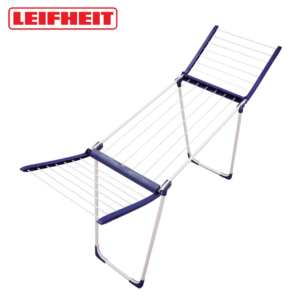 Cloth dryer rack medium deluxe winged clothes drying rack with adjustable line blue and white stainless steel or iron frame.